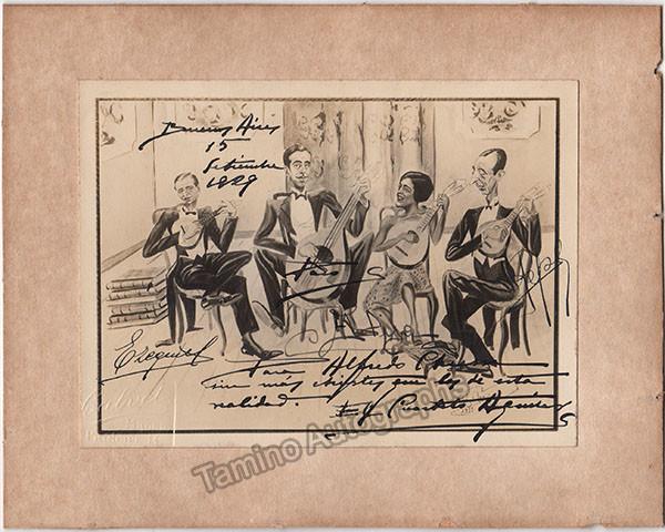 Famous Spanish Lute quartet that performed on tour in the 1920s and 30s. Nice photo of the 4 members as caricatures, signed by each of the 4 with their nicknames.