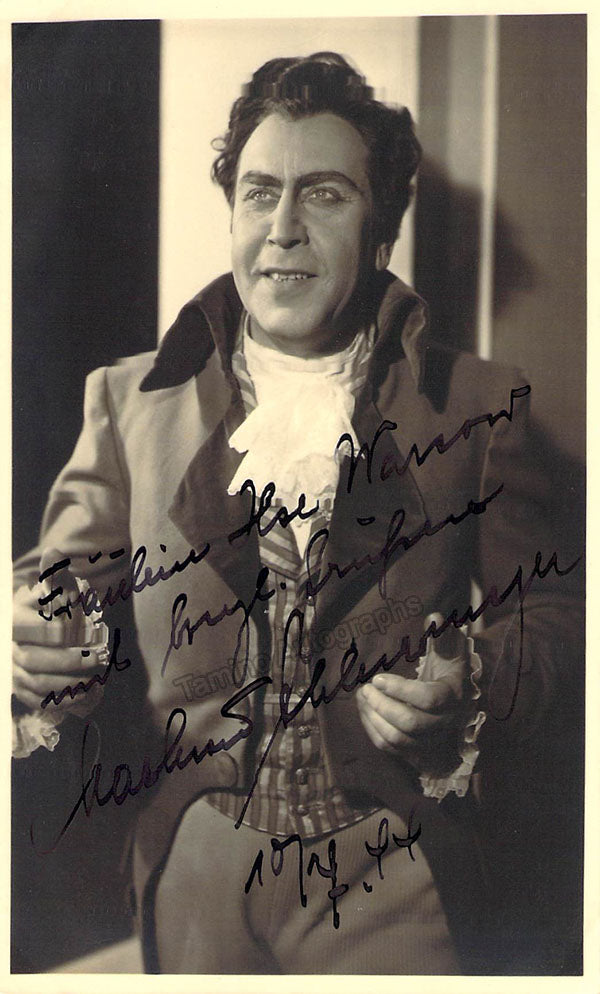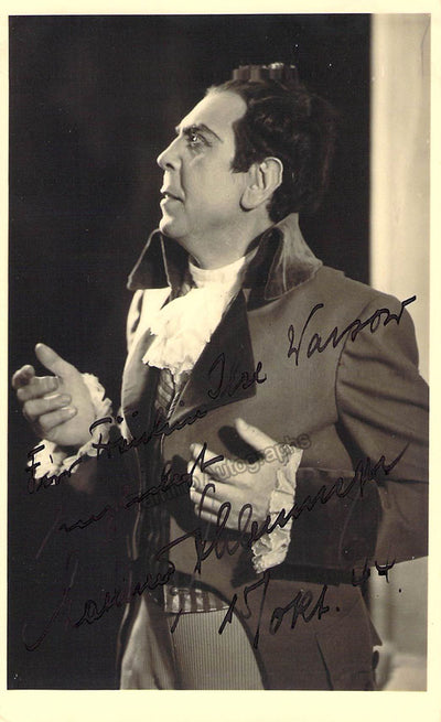 Signed photograph, shown as Renato in Verdi's Ballo in Maschera, inscribed and dated in 1944. Stamped on verso by photographer Hans Dietrich, Vienna. Size is 3.5 x 5.5 inches, in excellent condition.