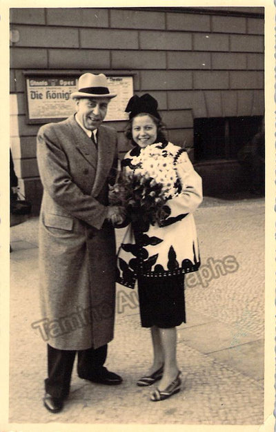 Signed photo, shown in a recital. Inscribed and dated in 1952. Stamped on verso by photographer Koch, Dresden. Size 3.25 x 5.5 inches.