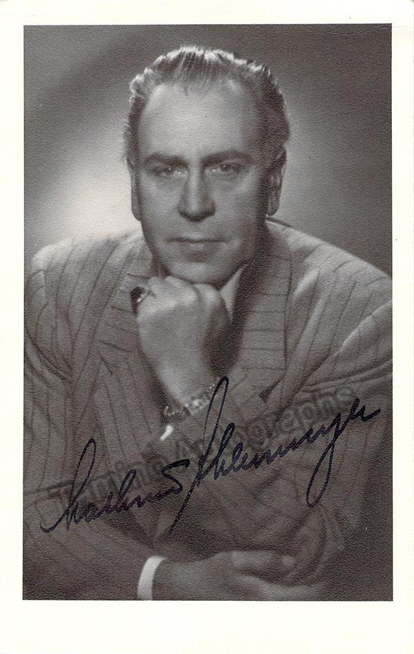 Signed postcard photograph, shown as Hans Sachs in Wagner's Die Meistersinger, inscribed and dated in 1953. Size is 3.5 x 5.5 inches, in excellent condition.