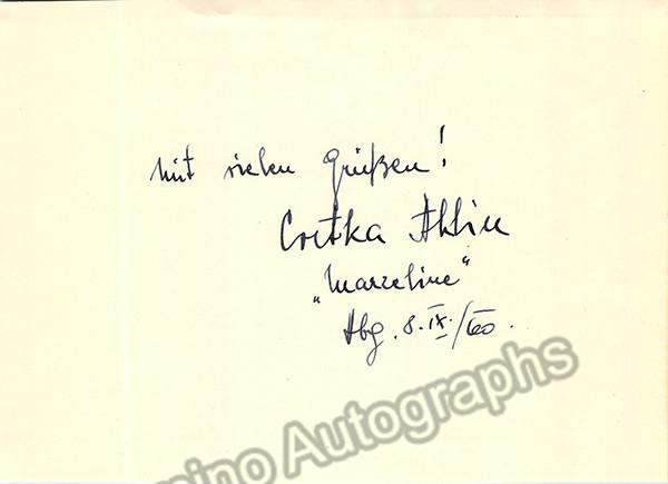 Slovenian contralto (1927-1985), signed note as Marceline, dated in 1950. Also included an unsigned photo shown as herself. Size is 4 x 5.75 inches