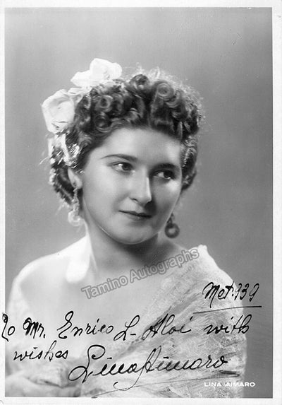 Signed postcard photograph, shown in role, inscribed and dated in 1939. Photo by A. Mario Crimella photo studios, Milan. Size is 4 x 6 inches, in excellent condition.