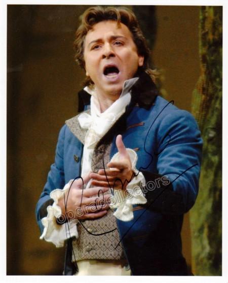 French tenor of sicilian ascent (1963- ), one of the most popular tenor voices today. Wonderful signed photo showing him singing in role (probably in the title role in Massenet´s opera "Werther"). Size is 8 x 10 inches.