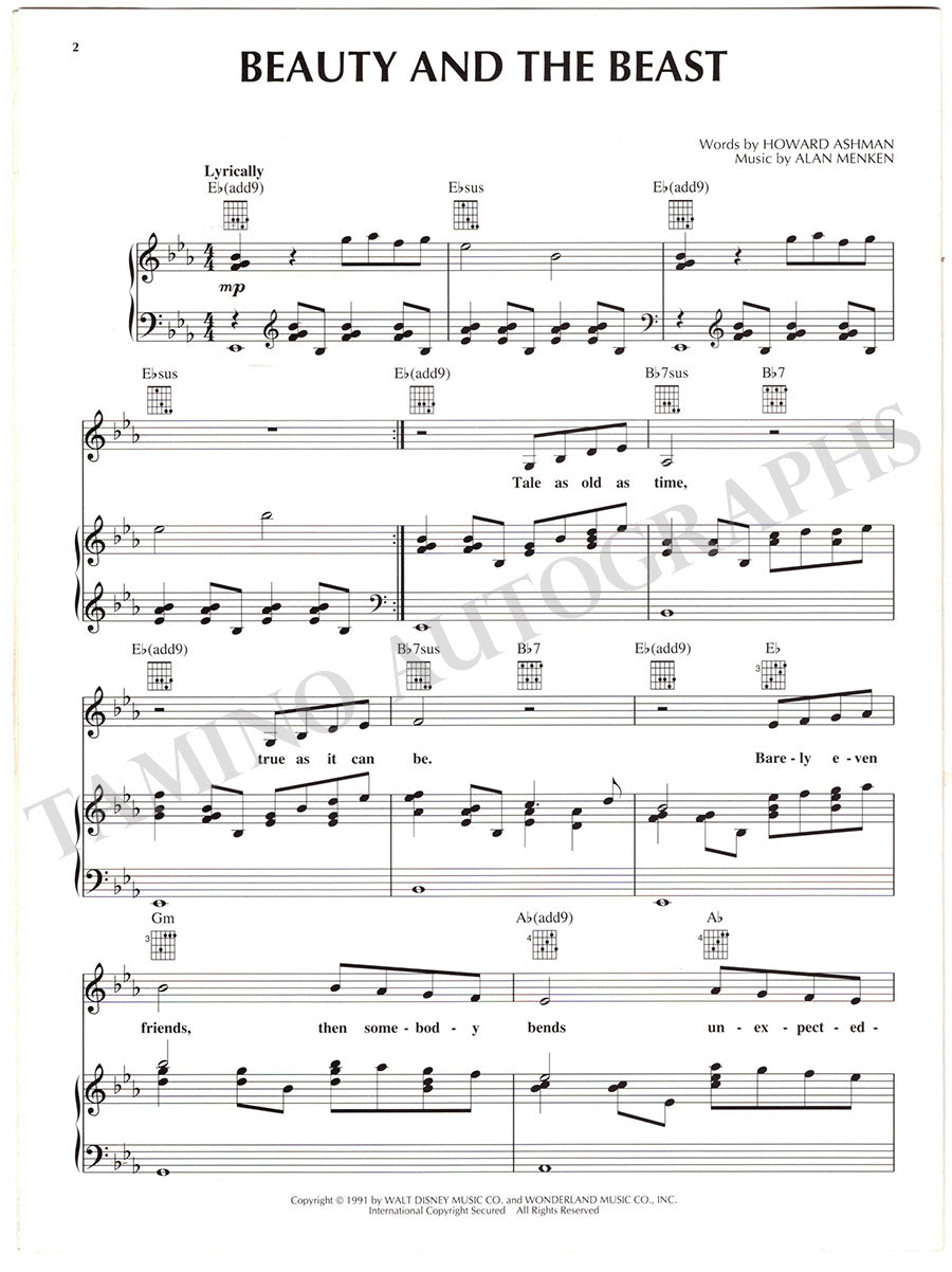 Menken, Alan - Signed Score "Beauty and the Beast"