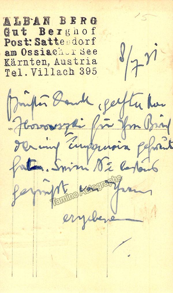 Berg, Alban - Signed Photo 1931 - Tamino Berg, Alban - Signed Photo 1931 - Tamino