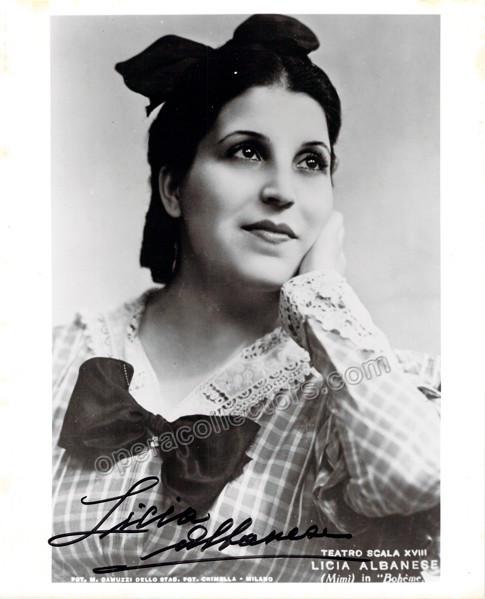 Italian-born American soprano (1909-2014), nice signed photo, 8 x 10 inches, shown as Mimi in La Boheme at Teatro La Scala. In exceellent condition