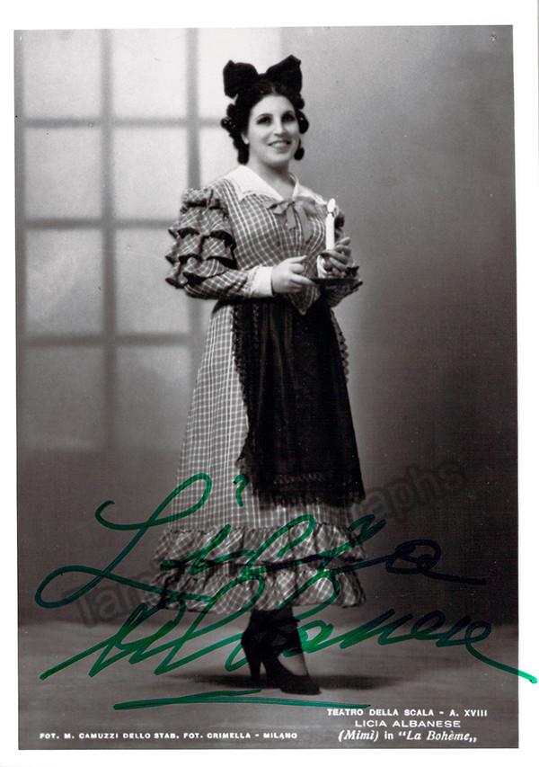 Italian-born American soprano (b.1913), signed photo, shown as Mimi in La Boheme at Teatro La Scala, 5 x 7 inches