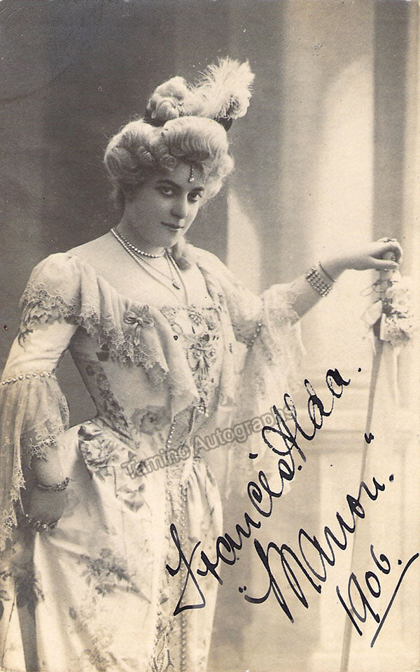 New Zealand-born Australian soprano (1879-1952), signed photo postcard, shown in title role of Massenet's Manondated in 1906. Bold and clear handwriting and signature. Size is 3.5 x 5.5 inches, in excellent condition.