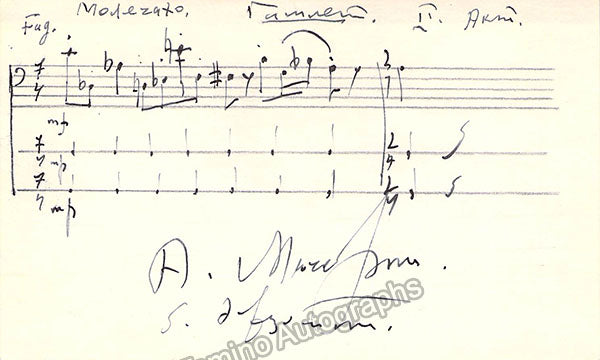 Set of 2 cards signed by him (one of them with a music quote). Each card is 5 x 3 inches, both in excellent condition.