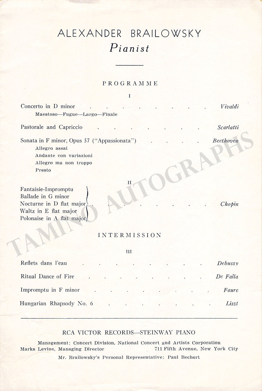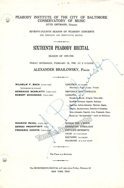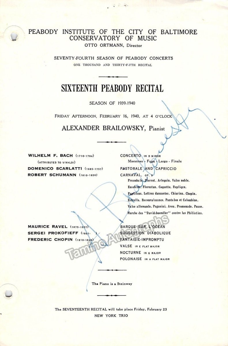 Brailowsky, Alexander - Signed Concert Programs (Various Options)
