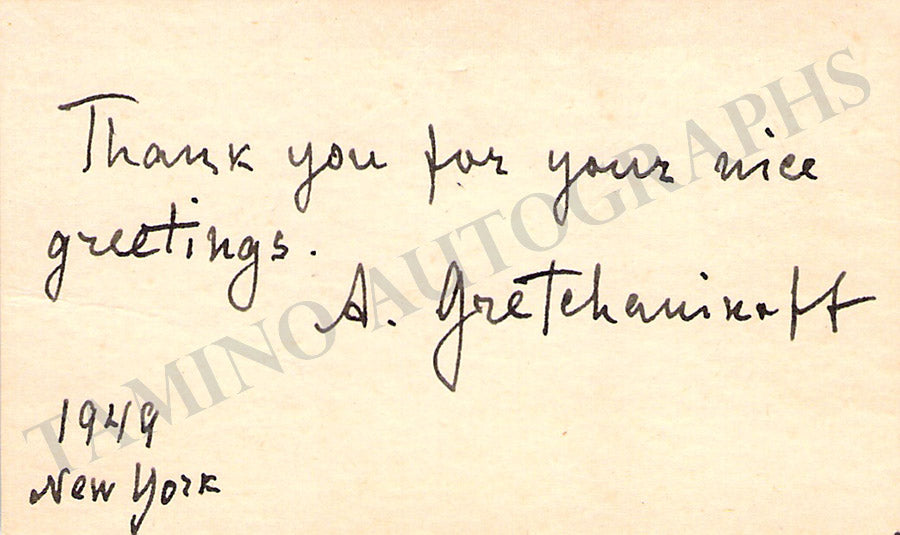 Gretchaninov, Alexander - Autograph Music Quote Signed 1948