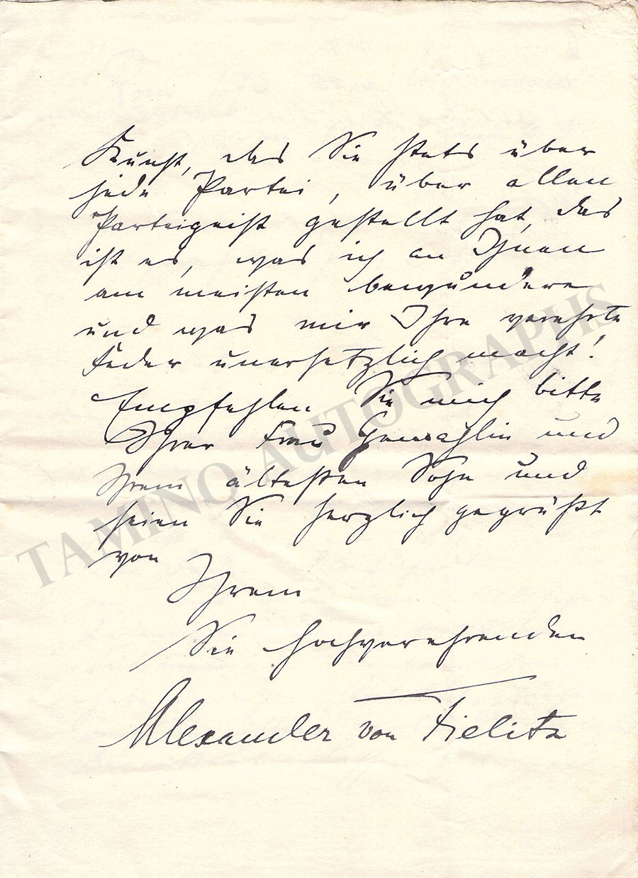 Fielitz, Alexander von - Autograph Letter Signed 1898