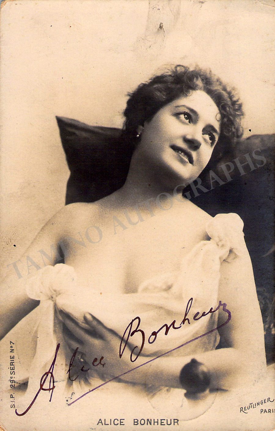 Black-and-white photo postcard signed by her. Size is 3.4 x 5.3 inches, in very good condition.