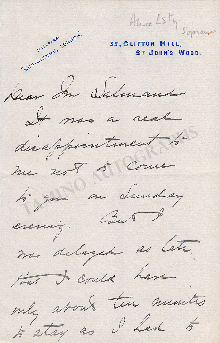 Esty, Alice - Autograph Letter Signed Esty, Alice - Autograph Letter Signed