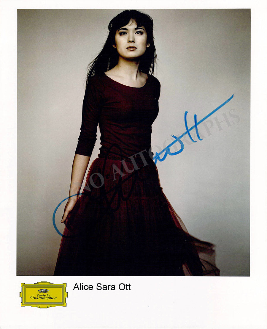 Color promo photograph by Deutsche Grammophon signed by her. Size is 8 x 9.75 inches, in excellent condition.