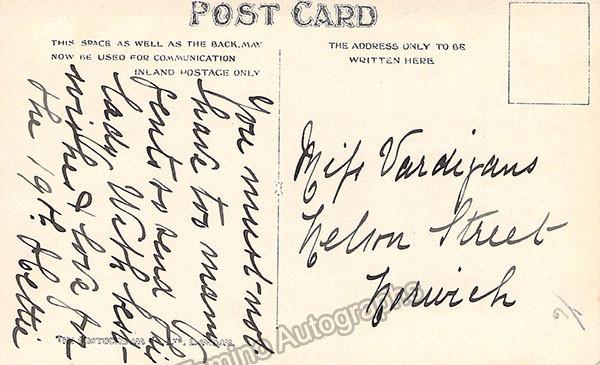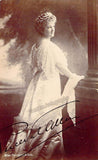 English soprano (1880-1955), signed photo postcard, shown probably in role. Signature is on front and handwritten on verso. Size is 3.25 x 5.5 inches