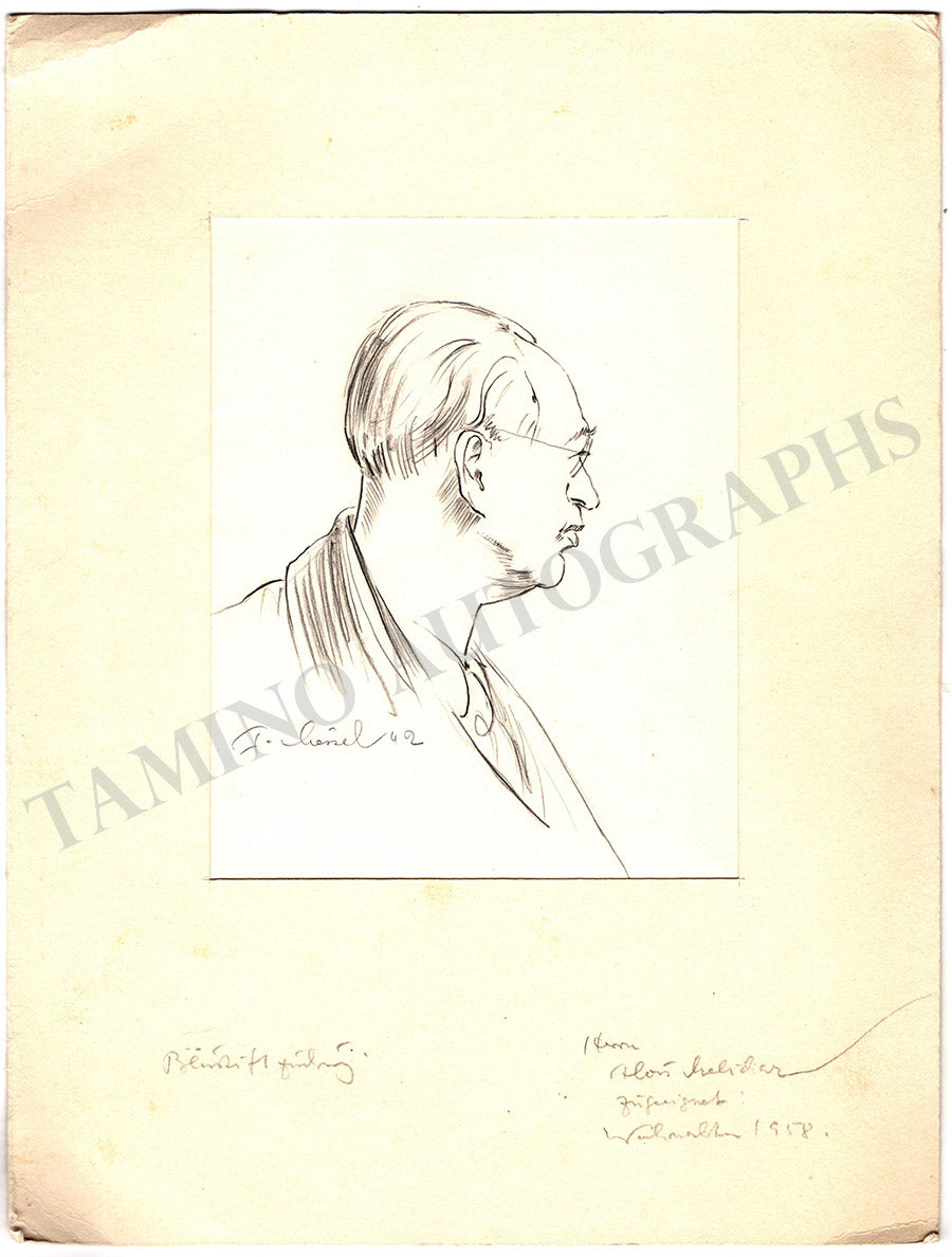 Fine original pencil sketch of the composer by Fritz Meisel (1942) signed and inscribed by Melichar, dated 1958. Size is 10 x 13.2 inches, in overall very good condition.