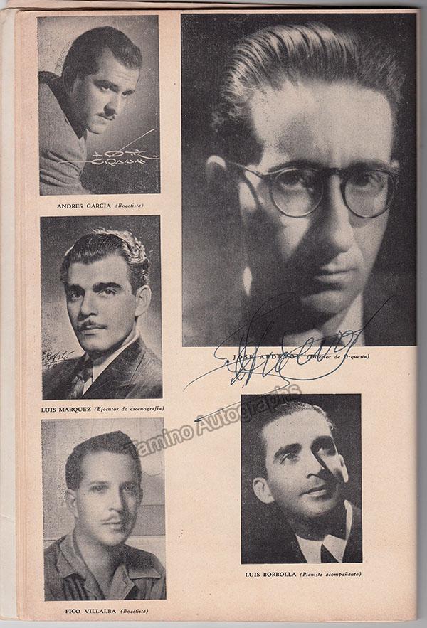 Program for a performance at Sociedad ProArte Musical at Havana, Cuba, on April 25th-31st, 1946, signed by dancers Alicia Alonso, Fernando Alonso, Marjorie Tallchief, Stanley Herbertt, Kenneth Davis, Fernand Nault, Barbara Fallis, conductor Jose Ardeval, and choreographer Alberto Alonso.  Size is 6.75 x 10.1 inches, full program with all pages and covers, in very good condition.