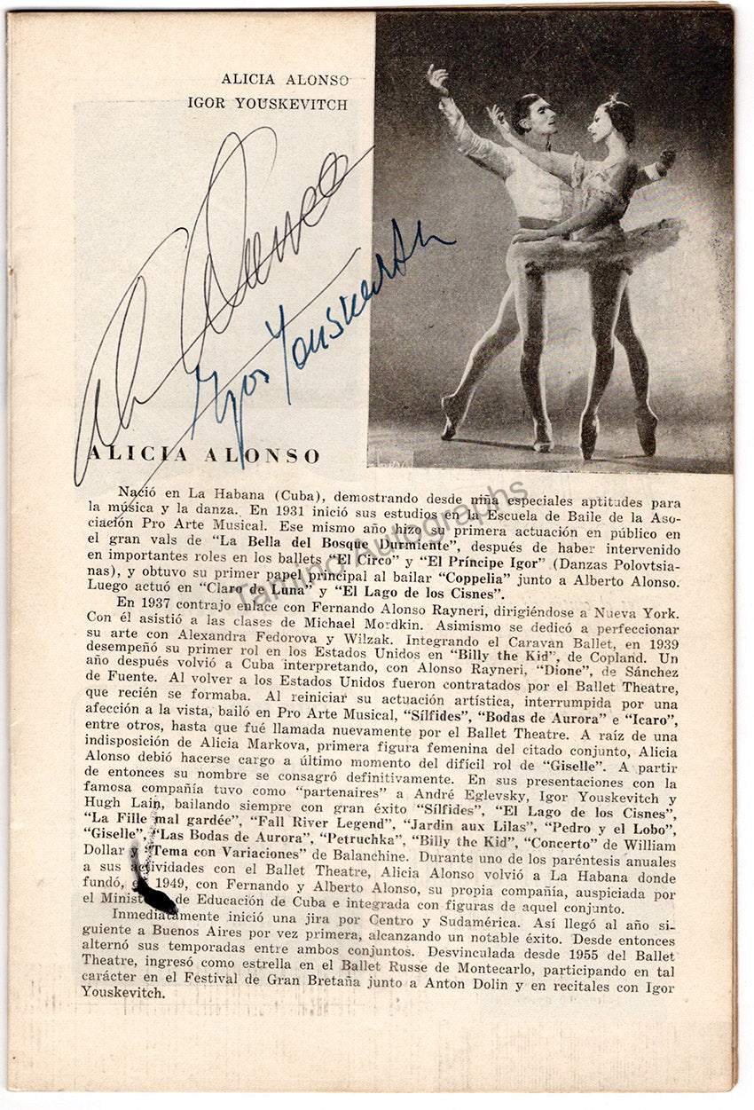 Alonso, Alicia - Youskevitch, Igor - Double Signed Program Buenos Aires 1958 Alonso, Alicia - Youskevitch, Igor - Double Signed Program Buenos Aires 1958 Alonso, Alicia - Youskevitch, Igor - Double Signed Program Buenos Aires 1958