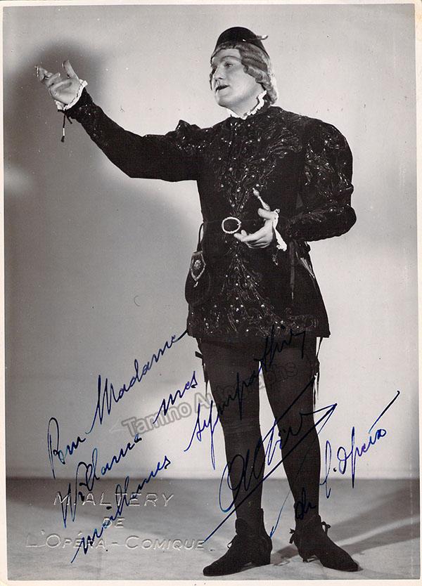 French tenor (1892-1974), signed photo, shown in role, inscribed. Stamped on verso by photography studio Intran Studio, Paris. Size is 5 x 7 inches, in excellent condition.