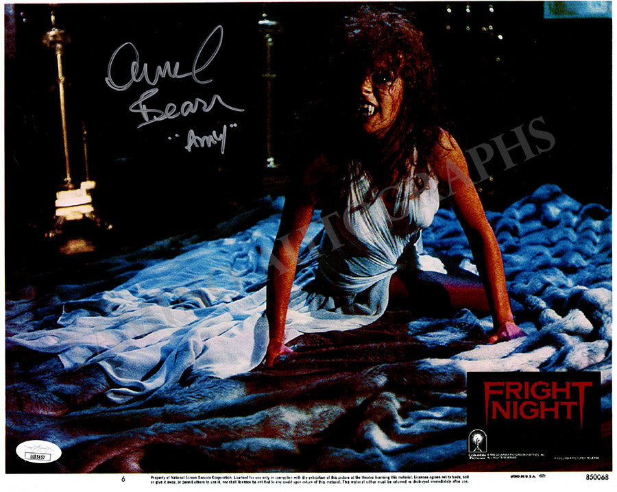 Beautiful color movie-still photograph signed by her shown in the Horror film "Fright Night" (1985).  Size is 13.8 x 10.9 inches, in excellent condition.