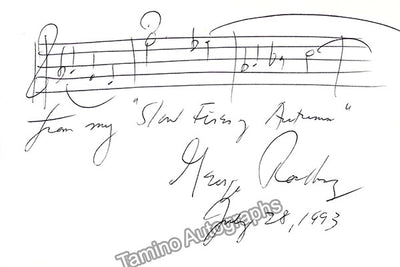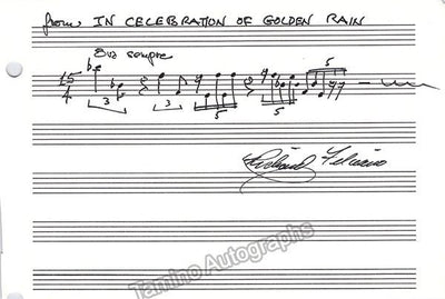 American composer (b.1930). Autograph music quote with 1 bar of music from his work 'In Celebration of Golden Rain' signed by him. Size is 8.1 x 5.5 inches, in excellent condition.