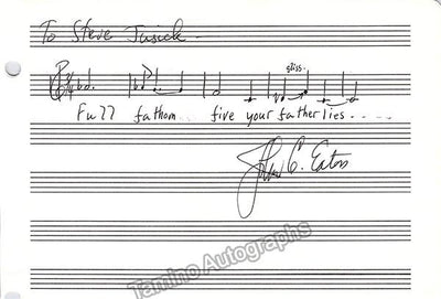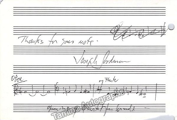 American composer (1935-2015). Autograph music quote with 5 bars of music signed and inscribed by him. Size is 8.1 x 5.5 inches, in excellent condition.