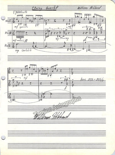American composer (b.1939). Autograph music quote with 6 bars of music from his 'String Quartet' signed by him. Size is 8.25 x 11 inches, in excellent condition.