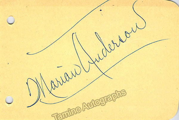 American contralto (1897-1993), highly celebrated in her time. The first black person, American or otherwise, to perform at the at the Metropolitan Opera and an inspiration to many future African American performers.  Signed album page with bold handwriting and signature. Size is 4 x 5.75 inches, in excellent condition.