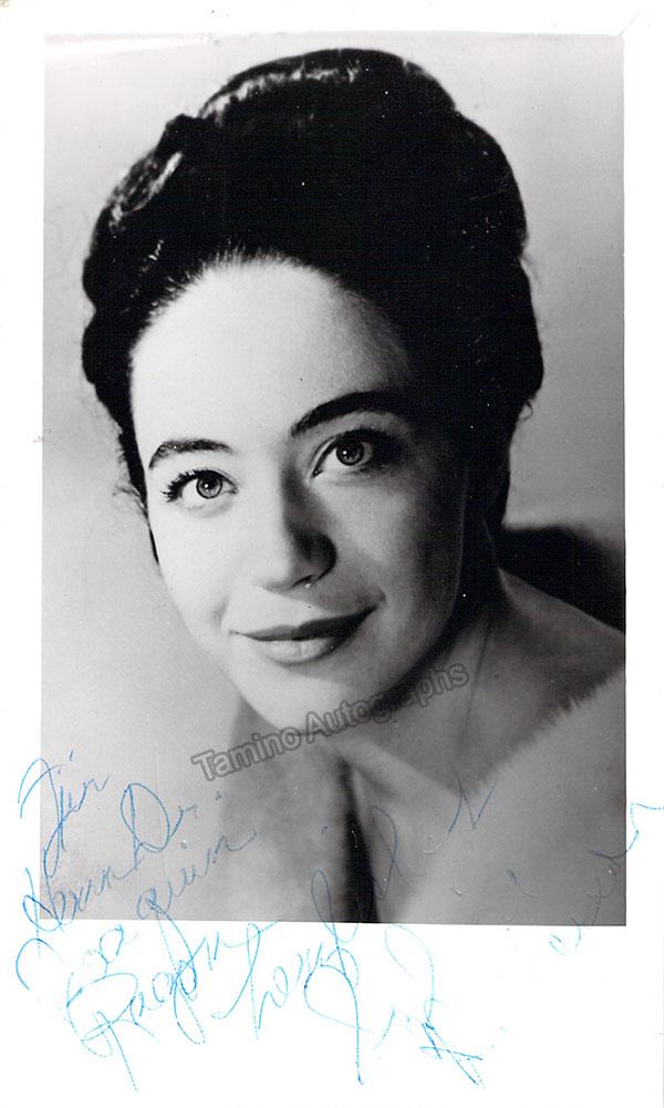 American mezzo-soprano, dramatic soprano and voice educator (b. 1937), signed photo, shown as herself. Inscribed. Stamped on verso by photographer Mayer, Barcelona. Size is 4 x 6 inches, in excellent condition.