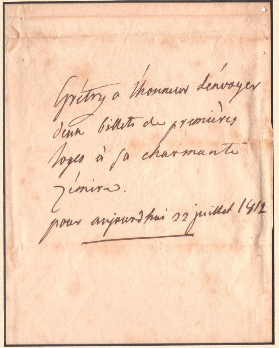 Gretry, Andre - Autograph Note 1812 - Tamino Gretry, Andre - Autograph Note 1812 - Tamino Gretry, Andre - Autograph Note 1812 - Tamino