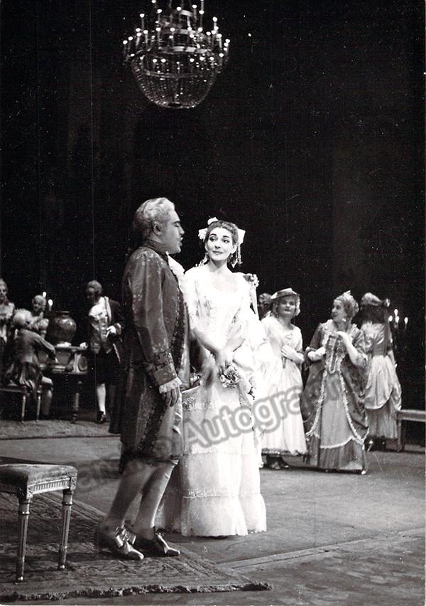 Original photo by Erio Piccagliani, ink stamped on verso, shown on stage with Mario del Monaco. Size is 4 x 5.75 inches, excellent condition