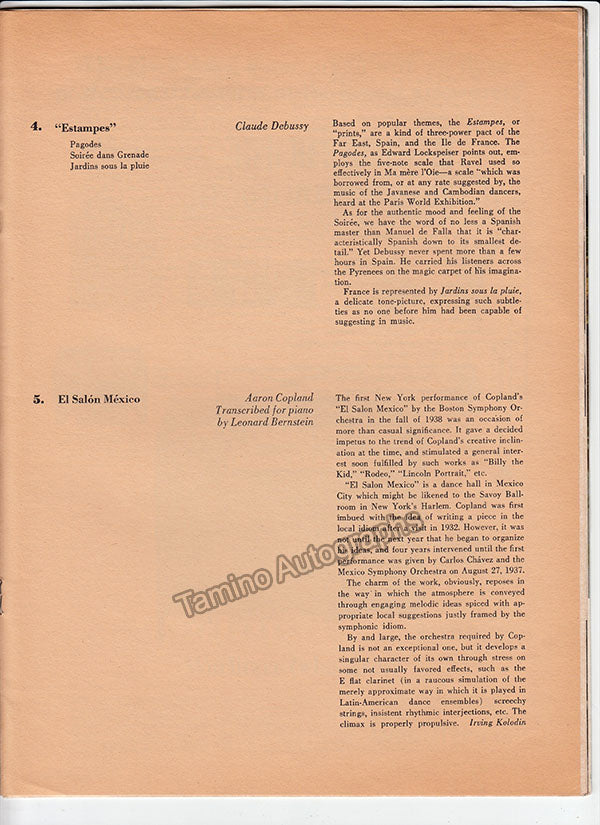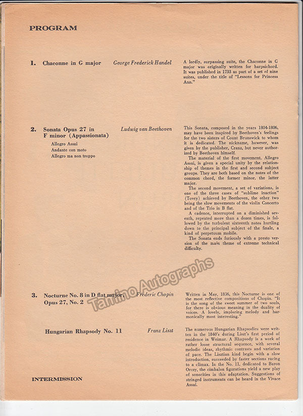 Program for a performance of the French pianist in New York as part of the Community Concert Association Series Season 1964-1965, signed by her on her bio page.