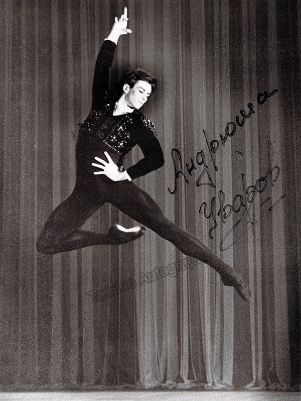 Russian dancer, principal at the Bolshoi Theater. Nice signed photo, shown in performance. Stamped by photographer and handwritten on verso "Bolshoi Ballet, Lincoln Center Festival 2000". Size is 7 x 9 inches, in excellent condition.