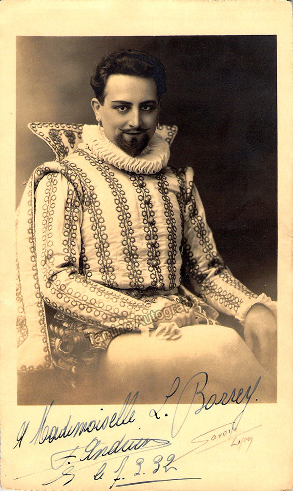 Belgian baritone and voice teacher (1903-1980). Signed photograph, shown in role, inscribed and dated in 1932. Size is 4.75 x 8 inches, small creases on edges, otherwise in very good condition.