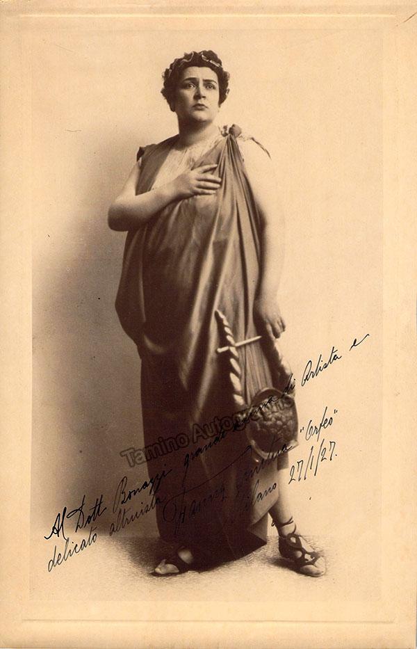 Mexican contralto (1887-1968), signed photo, shown as Orfeo in Gluck's Orfeo et Euridice, dated in Milan in 1927, inscribed. Size is 7.75 x 12 inches, in excellent condition.