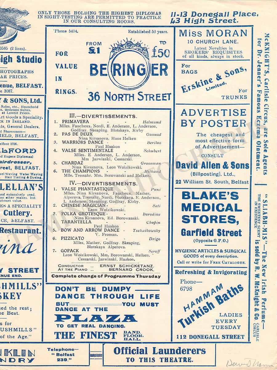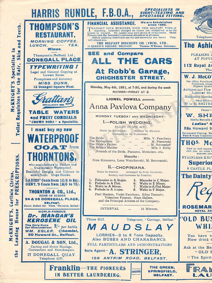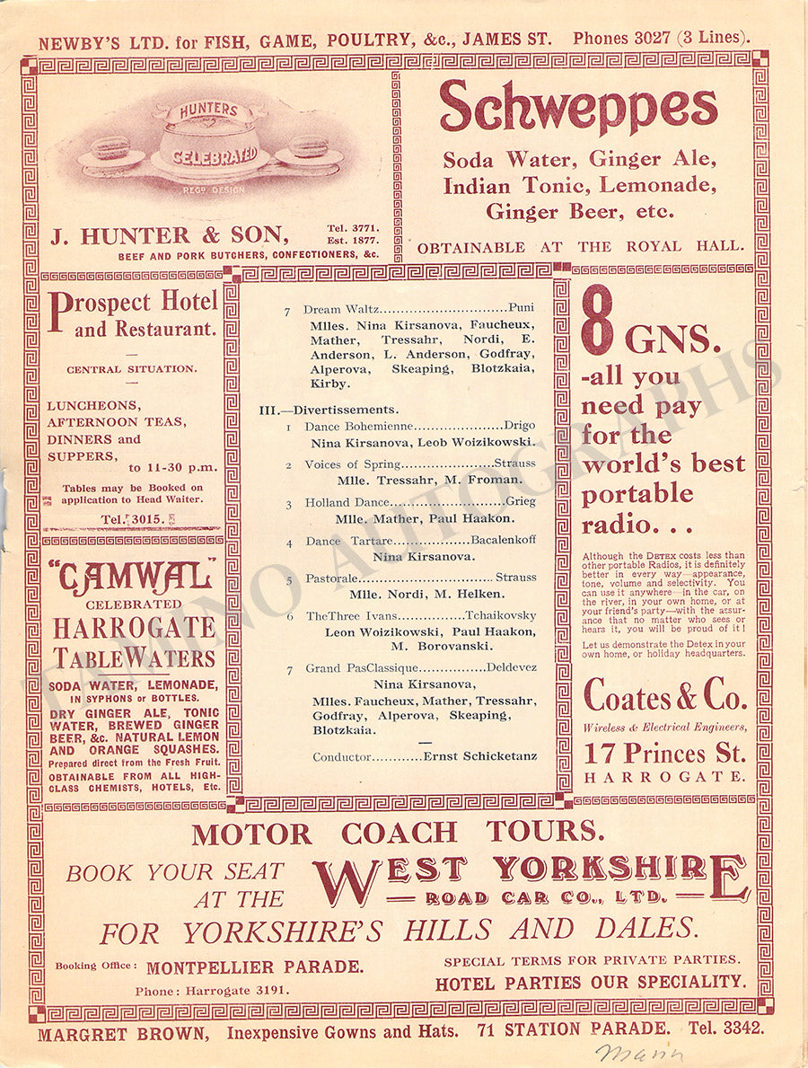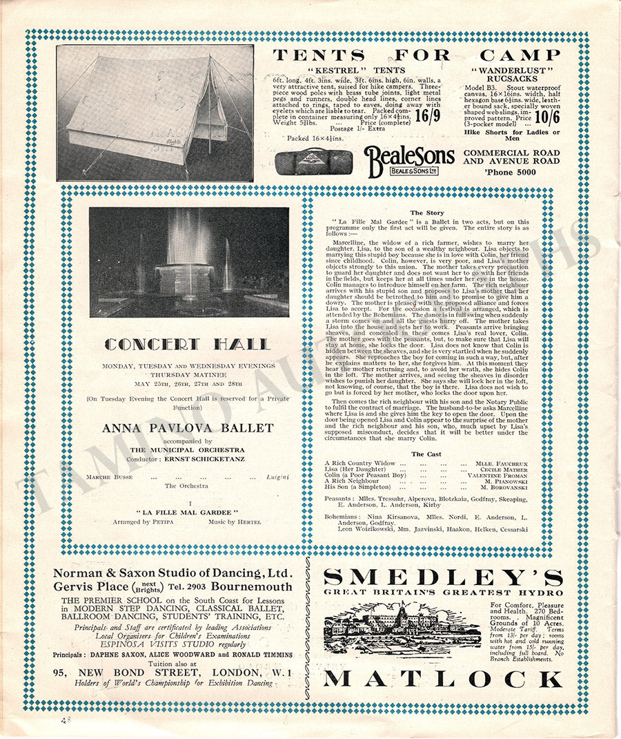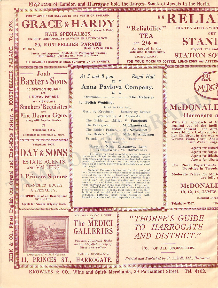 Original program for a performance in Leeds on October 13, 1930, featuring the star ballerina. Size is 5.5 x 8.4 inches, full program with all pages and covers, in excellent condition.