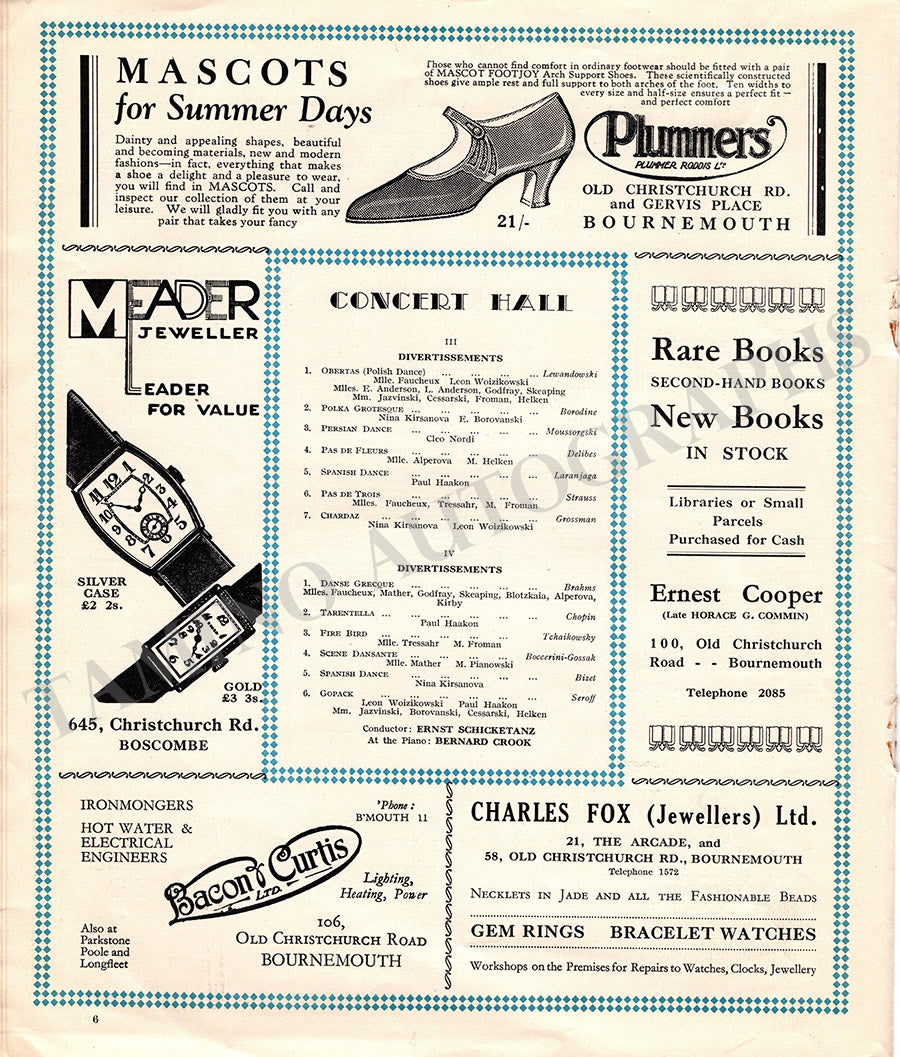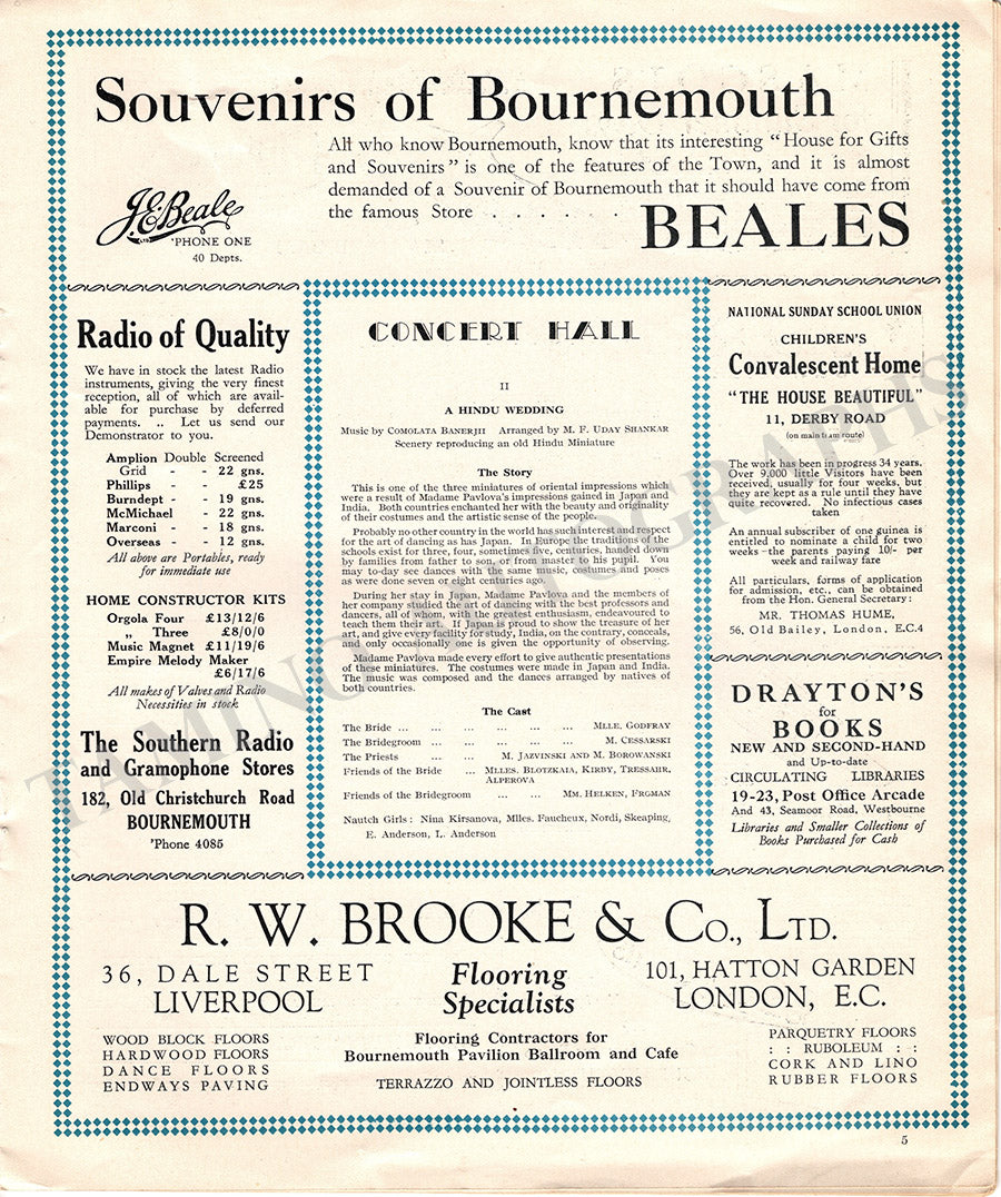 Program for a performance of the star ballerina at The Prince's Theater, Bristol, on October 2, 1930. Size is 5.6 x 8.5 inches, full program, in excellent condition.