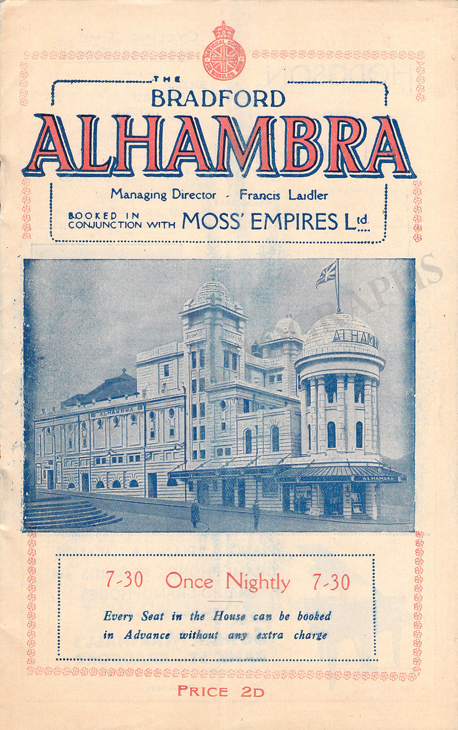 Program for a performance of the ballerina at the Palace Theater, Manchester, on October 27, 1930. Size is 5.3 x 8.4 inches, full program in excellent condition.