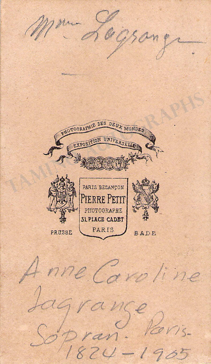 Lagrange, Anne Caroline de - Vintage CDV Photograph Lagrange, Anne Caroline de - Vintage CDV Photograph