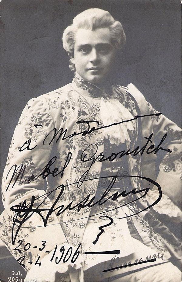 Italian tenor (1876-1929), very famous in the first decade of the 20th century for singing across Europe, Russia and South America. Later on became a teacher and a composer and left various recordings. Signed photo postcard, shown in role, dated in 1906, inscribed. Size is 3.5 x 5.5 inches, in excellent condition.