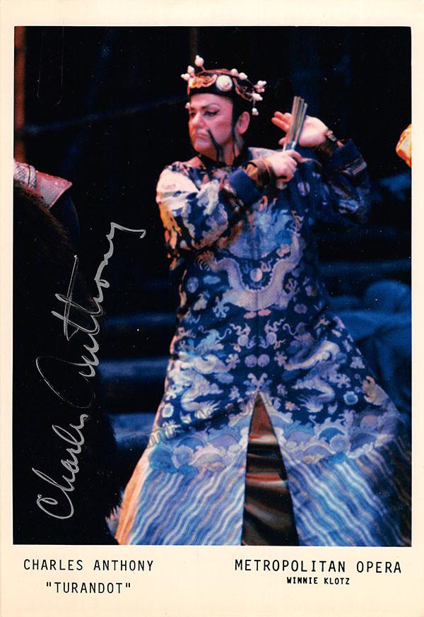 American tenor (1929-2012), signed color photo, shown in Turandot. Inscribed and signed on verso. Size is 5 x 7 inches, in excellent condition.