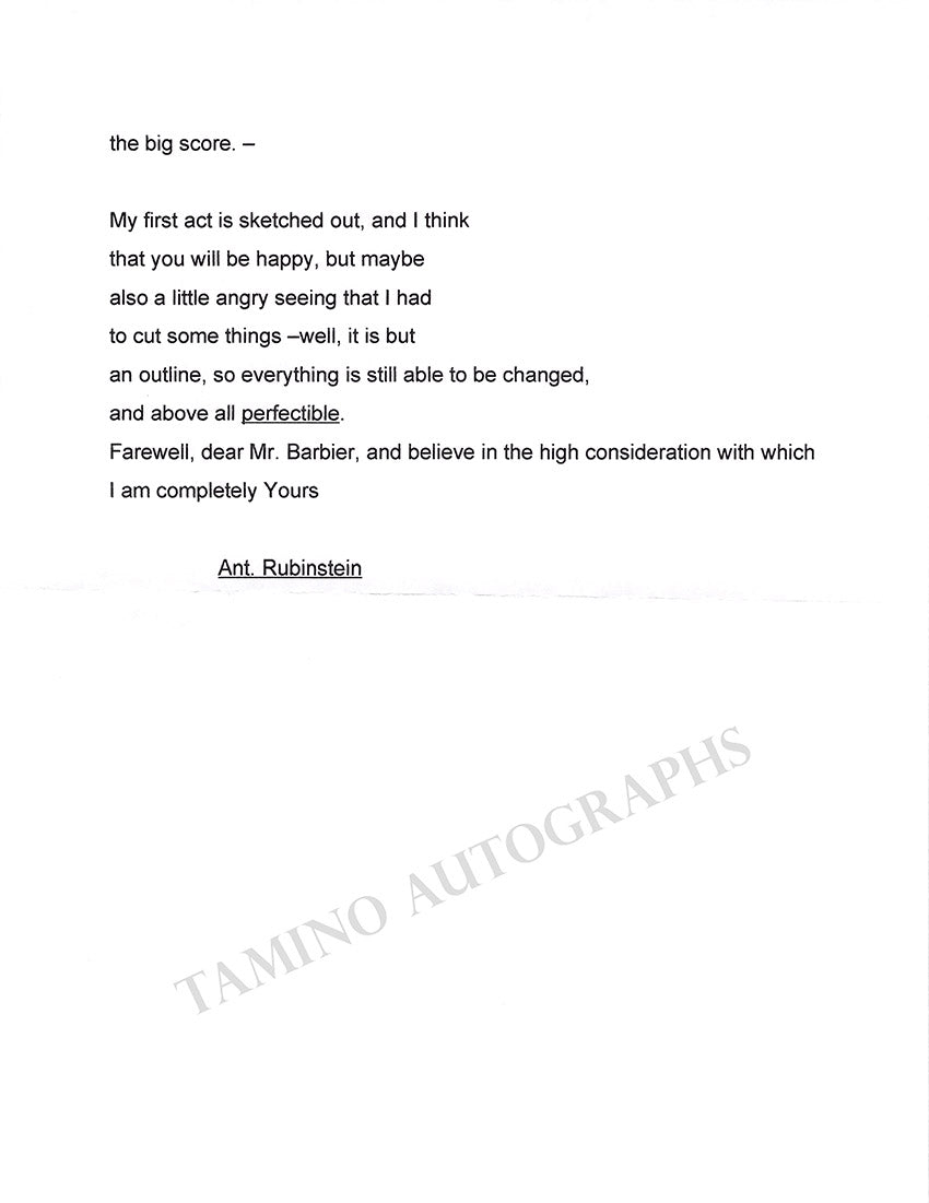 Rubinstein, Anton - Autograph Letter Signed 1875