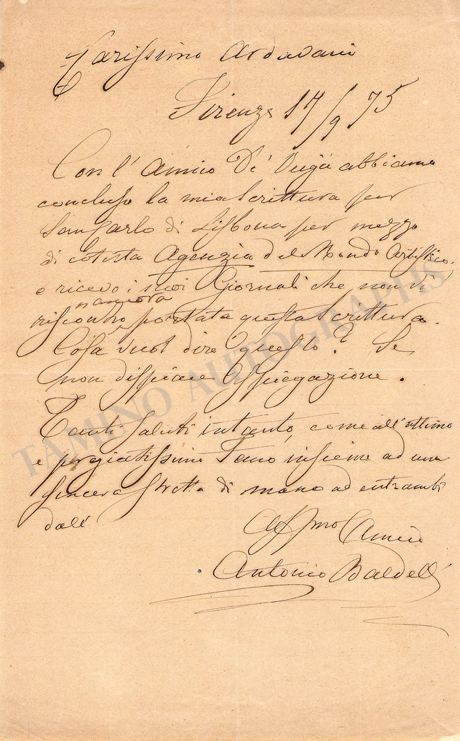 Baldelli, Antonio - Autograph Letter Signed 1875