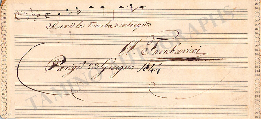 Tamburini, Antonio - Autograph Music Quote Signed 1844 Puritani Tamburini, Antonio - Autograph Music Quote Signed 1844 Puritani