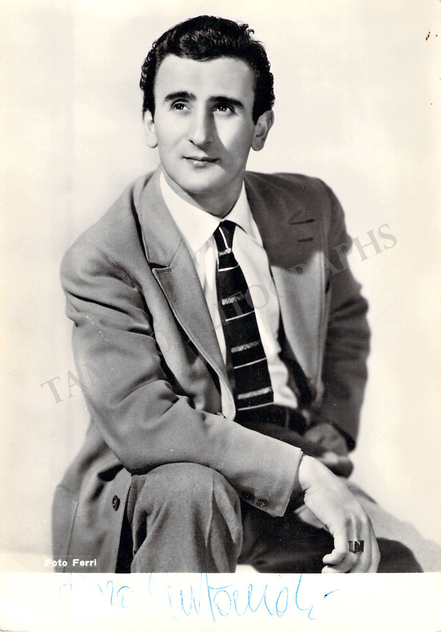 Italian tenor (1929-1999), signed photograph, shown as himself, photo by Ferri photographers. Size is 4 x 5.75 inches, small crease on bottom left, otherwise in excellent condition.