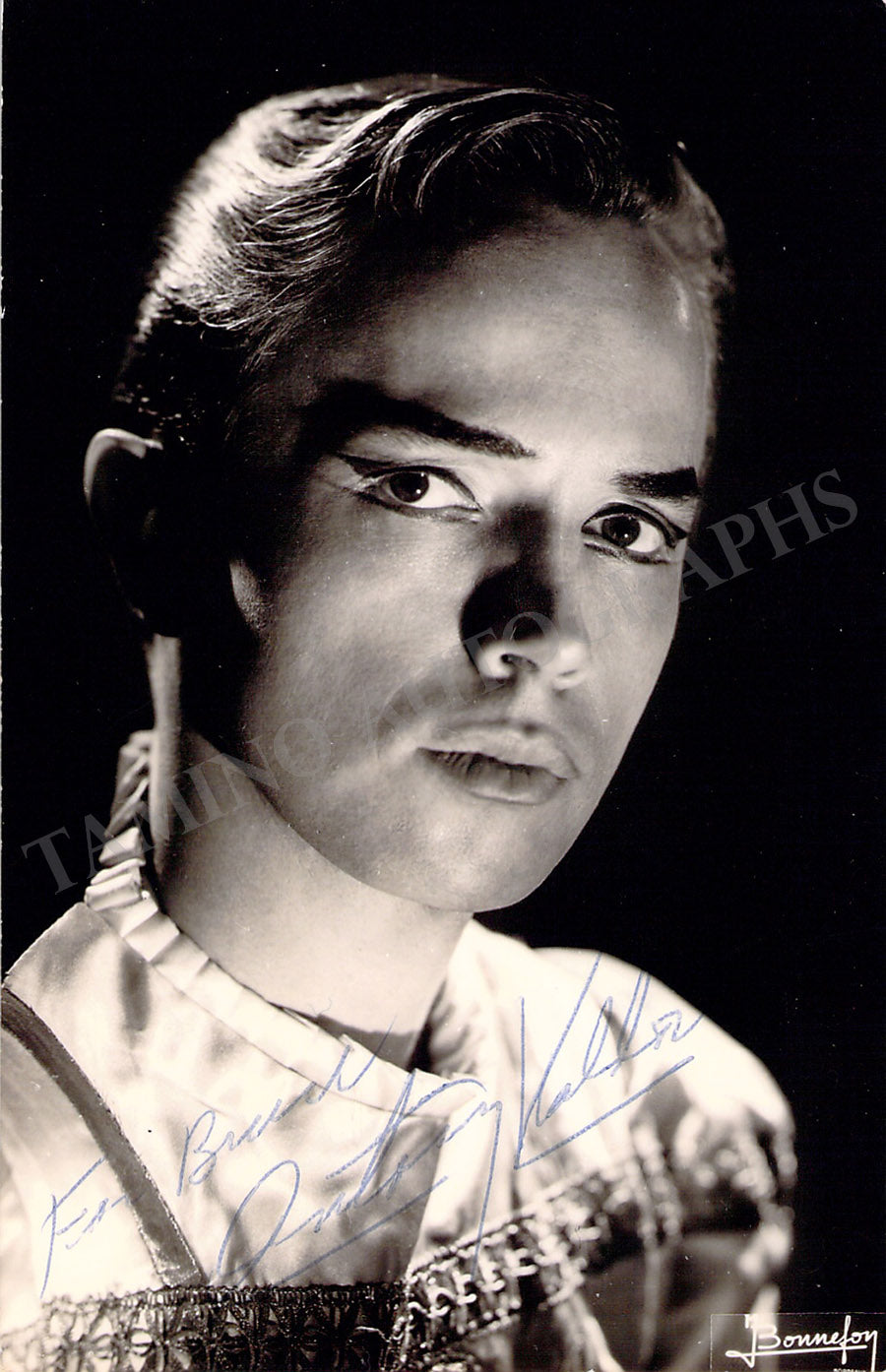 Black-and-white photograph signed and inscribed by him, shown young. Size is 3.5 x 5.4 inches, in excellent condition.