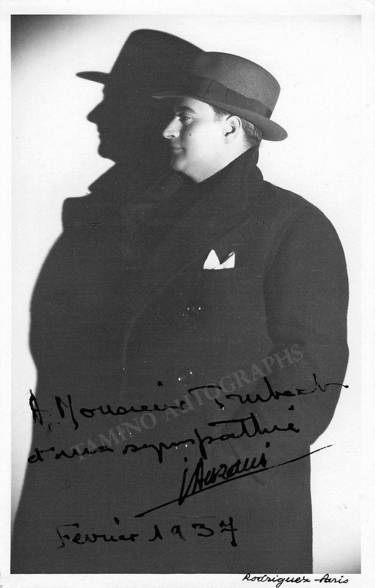 French tenor (1902-?), signed photo postcard, shown as himself, inscribed and dated in 1934. Blind stamped by photographer Rodriquez, Paris. Size is 3.5 x 5.5 inches, in excellent condition.