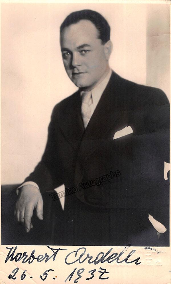 Polish tenor (1902-1971), signed photo postcard, shown as himself, dated in 1937. Blind stamp on front by photographer Studio Grabeil-Atelier, Vienna. Size is 3.25 x 5.4 inches, in excellent condition.
