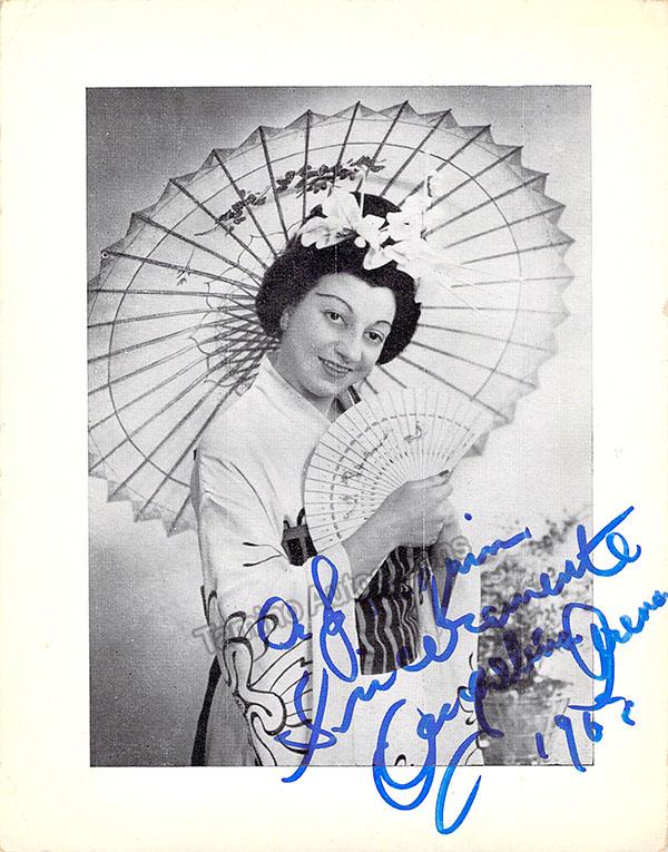 Australian soprano, who sang at La Scala and other major European opera houses. Signed photo, shown in title role of Puccini's Madama Butterfly, inscribed and dated in 1967. Size is 4.75 x 6 inches, some wear on edges but otherwise in very good condition.